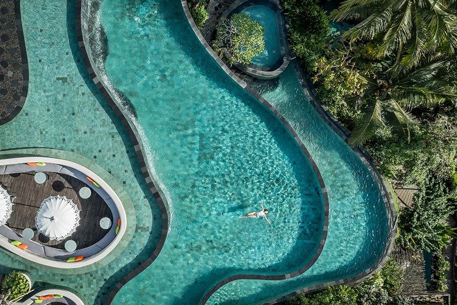 Embodying the breathtaking contours of Bali’s renowned Tegalalang Rice Terrace, Wanna Jungle Pool & Bar stands as the undisputed pioneer and leading jungle day club in Bali. Its expansive design unfolds across three distinct levels, showcasing infinity pools that serve as refreshing sanctuaries for tropical relaxation, surrounded by vast deck space to soak up the sun. With shaded cabanas and a unique circular seating pod, this awe-inspiring venue artfully recreates the exclusive ambiance of a day club nestled within a lush river valley setting.