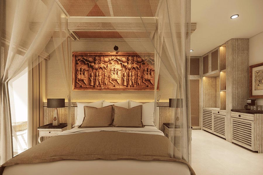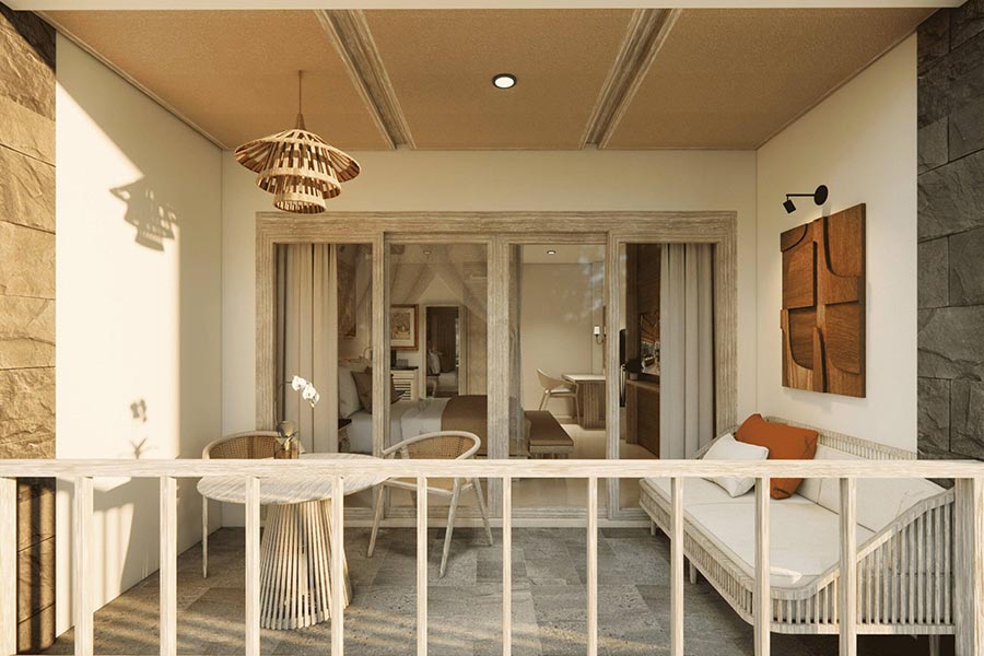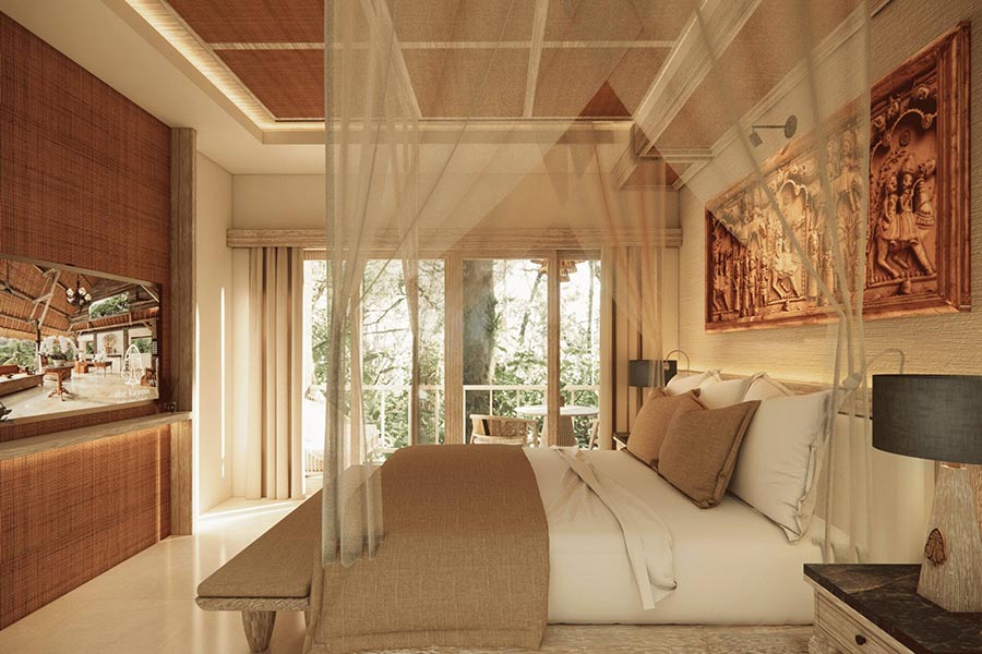 Cradled by tropical greenery, the Kayon Garden Suite is a serene hideaway where timeless Balinese charm meets refined simplicity. A soft glow fills the room through wide windows, illuminating natural textures and the gentle elegance of a bed draped in a billowing mosquito net. Step onto your private terrace or balcony, where a cozy sofa invites slow mornings and garden views. Inside, the spacious bathroom offers a quiet ritual of relaxation, complete with a deep soaking tub and rain shower, all wrapped in the warm embrace of handcrafted details. Here, the rhythms of nature and thoughtful design come together in perfect harmony.