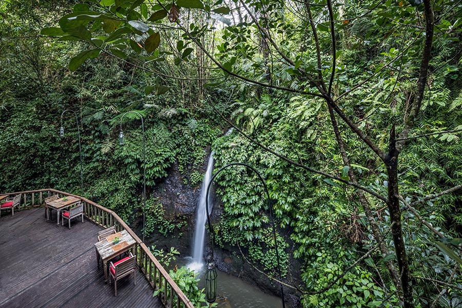 The deck at CANYON Jetty is hanging along the riverside, an ideal setting to slow down, relax having light lunch and afternoon tea surrounded by stone cliff while watch the waterfall. Enjoy the spring dripping among the moss lining the stone and the nature sound of water ripples hits the stone in the river. The Jetty is accessed with some easy step down also the best spot for morning Yoga and doing cooking class, a unique and unforgettable holiday experience