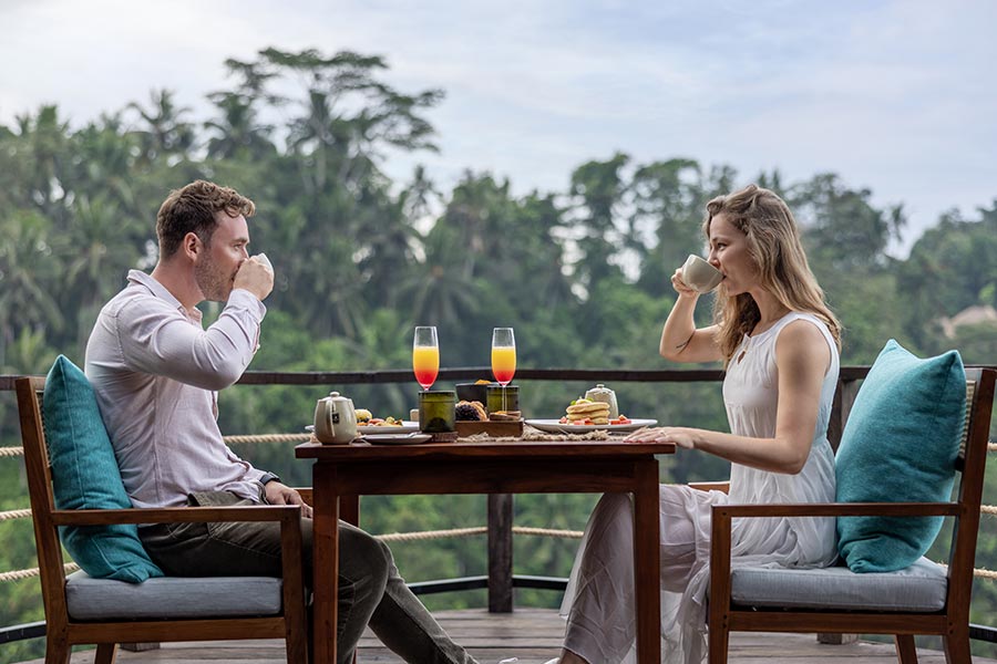Showcasing an unrivalled 180-degree view above Ubud tropical rainforest, The Flying Leaf is perched atop the edge to deliver an intimate dining experience. The unique shape of this space was inspired by a magmatic tree’s leaves that grew for ages at The Kayon Valley Resort. Every guest will feel like flying on a piece of leaf upon enjoying the cuisine at this aesthetic setting.