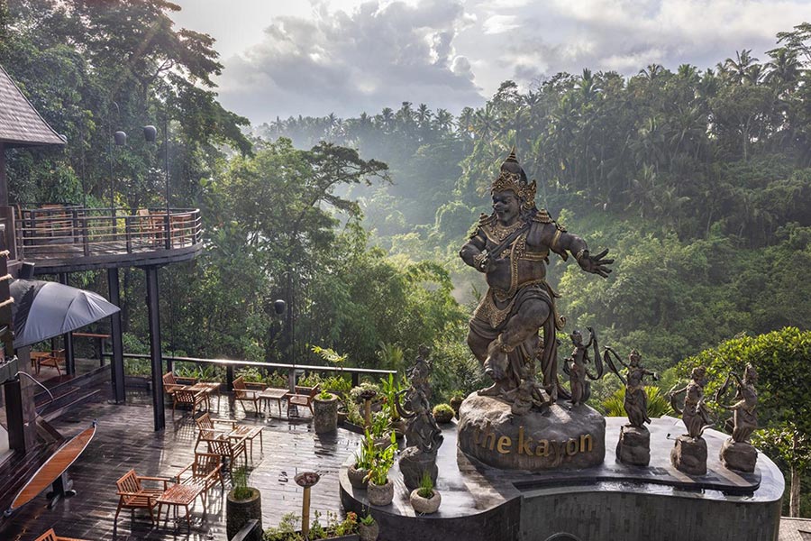 The lunch menu is a light and nutritious selection of sandwiches and salads. The dinner menu is Western, Asian, and Signature Kepitu dishes in a Royal Balinese setting. Opt for the weekly Culture Diner program for an authentic Ubud experience, or reserve a romantic dinner for two on its floating sky roof deck with The Kumba Karna Statue setting.